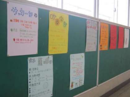 各部長から最初のあいさつ       廊下に貼られたポスター