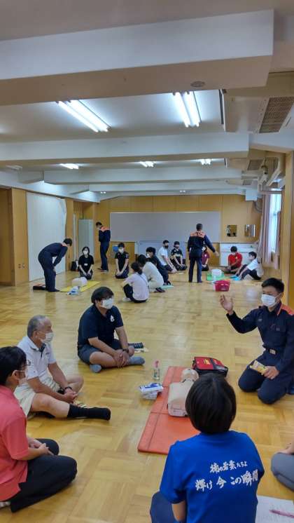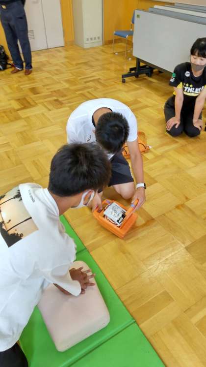 呼吸や心臓が止まった時に大切な『AEDの使い方』を含む心肺蘇生法を学びました。