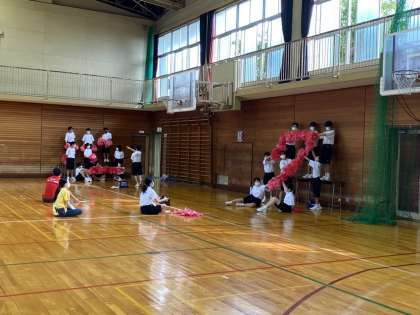 1年生では体育大会の学年演技ポン文字に取り組んでいます。