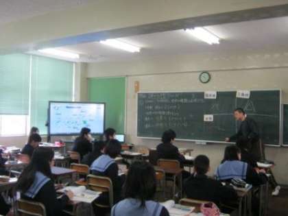 淡路中学校では「わかる・できる」が体感できる授業づくりに力を入れています。その一環として電子黒板を活用した授業に取り組んでいます。