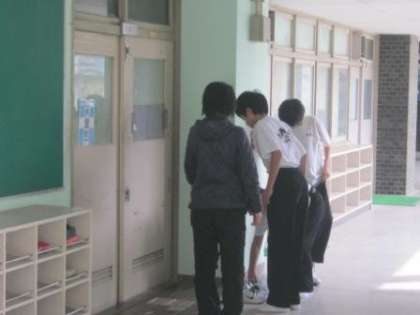 1年生は6月に一泊移住(宿泊行事)があり、泊行事の事前検診を兼ねて行われました。男女とも体操服に着替えて保健室前でスタンバイ。話し声が大きいと検診に影響するので(聴診器が聴きづらくなりますよね)、私語はNG。みんなマナーを守り、静かに待つことができました。