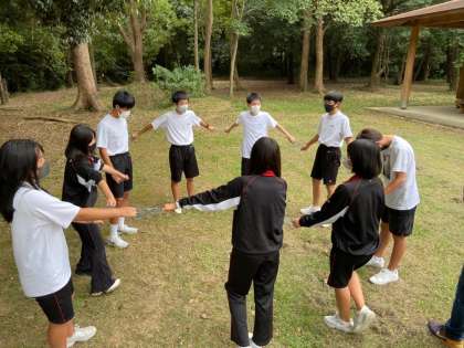 午後は「クラスビルディング」です。様々なミッションにクラスで協力して取り組みます。