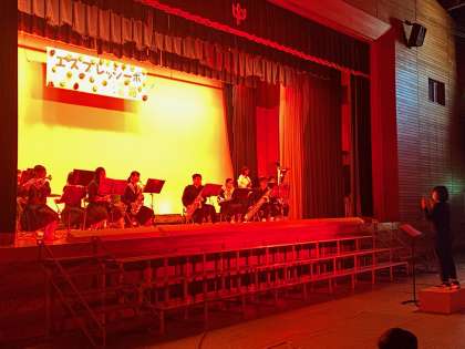 学級旗コンテストの後は、淡路中学校吹奏楽部の演奏です。新型コロナ禍の為、昨年度はコンクールも中止となったり、吹奏楽部が活躍するイベントがほぼない状態に加えて、部活動すら許されない状況でしたが、緊急事態宣言措置の緩和とともに吹奏楽部も元気に活躍しています。