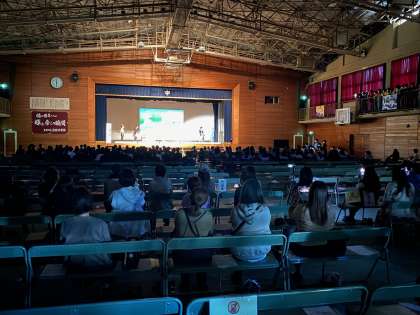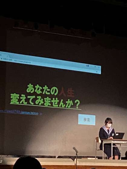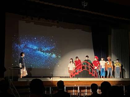 テーマは演劇『絆』です。淡路中学校生活で得たものを馴染み深いキャラクターを通して、伝えてくれました。