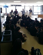 7時30分に伊丹空港に集合し、出発式の後、手荷物検査やチェックインをすませ、機内に乗り込みました。予定通り、飛行機は離陸し、2泊3日の修学旅行が幕を開けました。