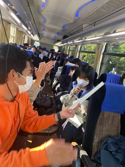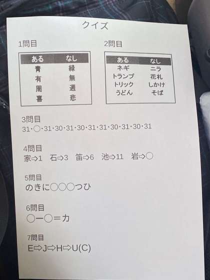 車中では、バスレク係りからプリントが配られ、二人一組で謎解き大会です。因みに先生チームは全敗??