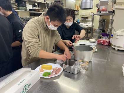 こちらの班はけいちゃん鍋と洋風手巻き寿司を下拵え中。さぁ、どんなお味でしょう!