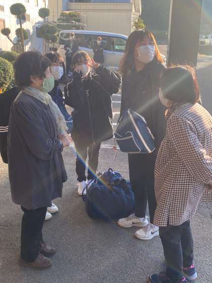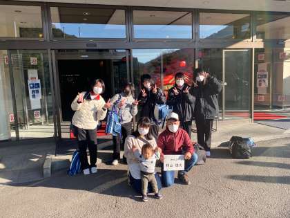 画像は郡上八幡ホテルの前での退村式です。お世話になった民家の人達が車でホテルまで送ってくれました。