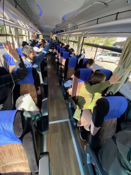 ケービング(鍾乳洞)探検・狩猟体験・バームクーヘン作りに分かれて体験です。