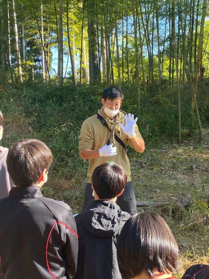 バームクーヘン作り道具部隊は、バームクーヘンの土台となる竹を取りに山へ!