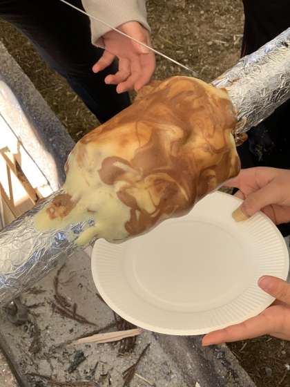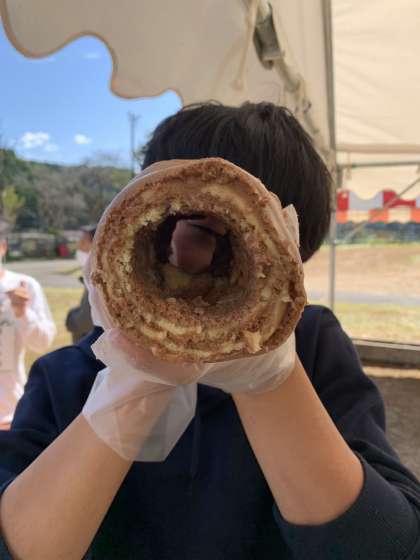 上手に竹を引き抜き、バームクーヘンの完成!