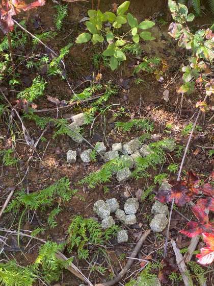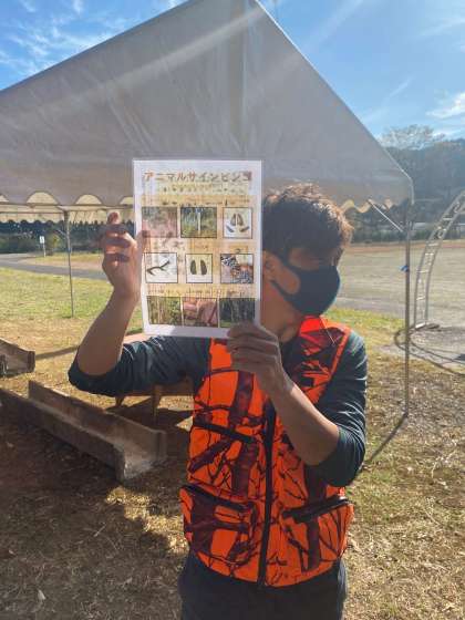 実際に鹿や猪の食痕や獣道、仕掛けられたエサなどを観察しました。