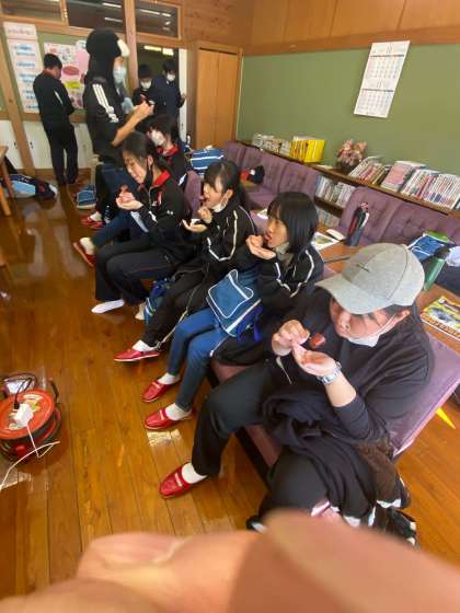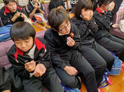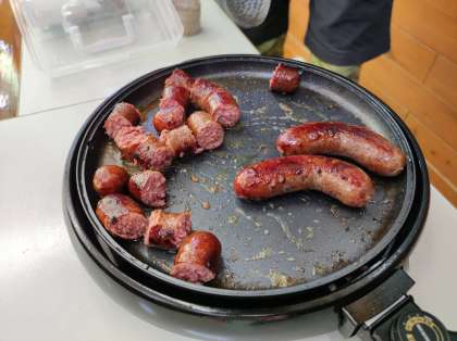 ぶりっジュワー! 歯応え抜群の美味いソーセージをみんなで頬張りました。