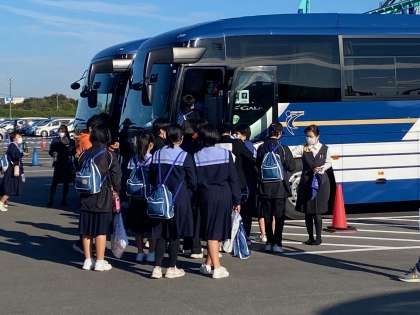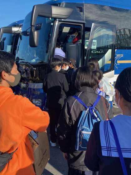 長いバス迄の道のりもなんのその、しっかりとした足取りで、乗車!