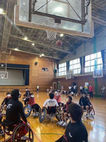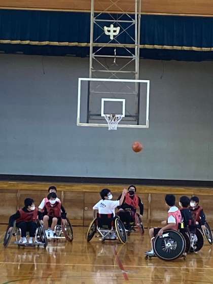 先月末、10月29日に1年生が障がい者理解学習の一環として、車椅子バスケットを体験しました。