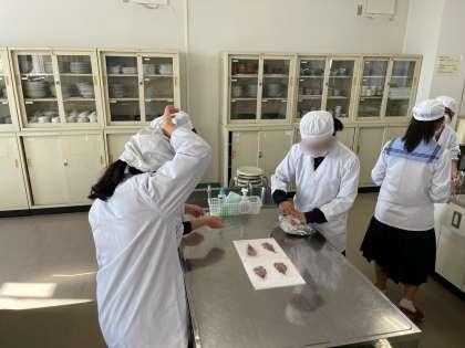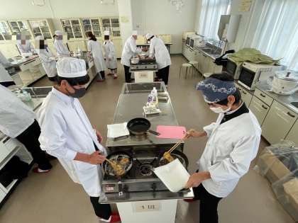 イワシを手開きで捌き、油で揚げていきます。魚の手開きなんてきっと初体験だと思いめすが、みんなワアワア言いながらもテキパキと実習を終えました。