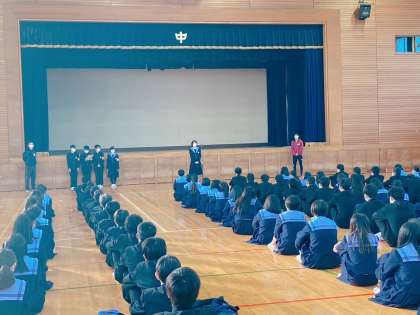 また、バレーボール部はすごく良い挨拶をしてくれていました。最近は3年生の入試に向けて、高校の先生などが頻繁に来校していますが、来校された高校の先生方や保護者、地域の方々から、礼儀のいい気持ちのいい学校ですね。と絶賛してくれています。
