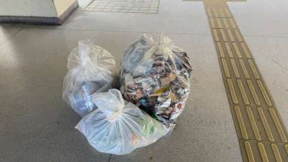 タバコの吸い殻や空き缶の多さに驚きながら、たくさんのゴミを集めました。