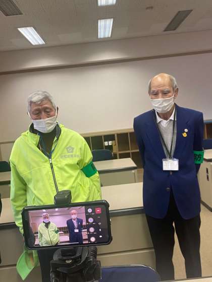 地域防犯の方々は、お隣の西淡路小学校と淡路中学校の児童・生徒の登校支援として、見守り活動をしていただいている日頃から大変お世話になっている泉 雄二郎さんと若林 隆夫さんです。