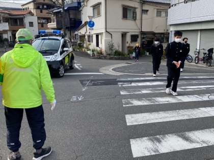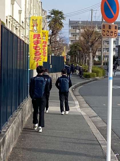 今日、月曜日は本来ならば全校集会の日ですが、毎月第2週の月曜日は東淀川区見まもるデーです。
