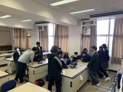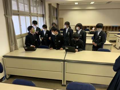 この見学会はサークル紹介とは違って、日々の活動の様子を知ってもらうことが目的でした。本校で行われている各サークル活動の様子を1年生が小グループに分かれて見学してまわりました。