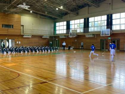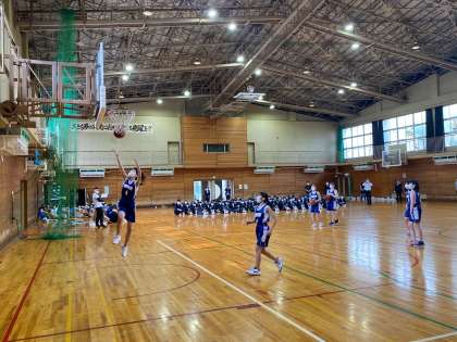 陸上部の次は、サッカー部、女子バスケットボール部、男子バスケットボール部と続きます。どの部も実際の練習のパフォーマンスでアピールしました。
