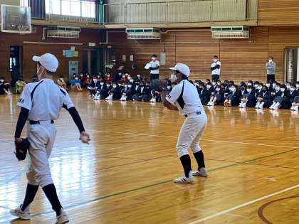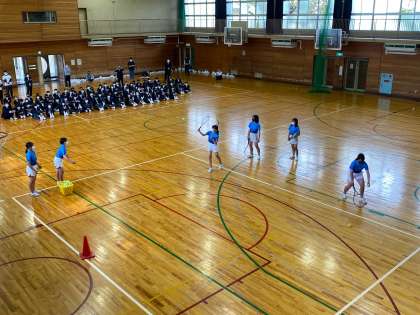 男バスに続いて、テニス部、野球部、女子バレー部と続きます、中でも女バレは音楽を流しリズミカルにパフォーマンスを披露!