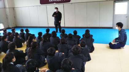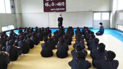 4月14 日の1年学年集会では、勢木先生からお話がありました。
