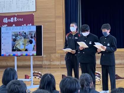12日、13日のサークル見学に先立って、本校ならではの「サークル活動」について、1年生向けの紹介がありました。