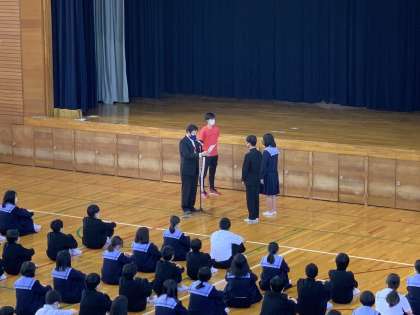 また各学年これから泊行事が控えているので、体調に気をつけること。そしてゴールデンウィーク中は家族との時間を大切にすることなど、生活全般に関するお話がされました。