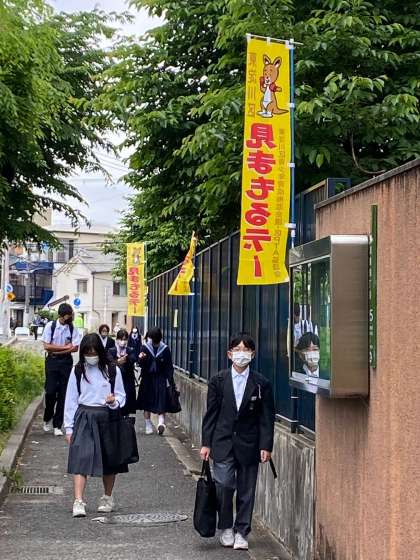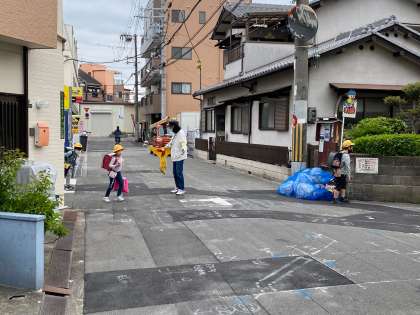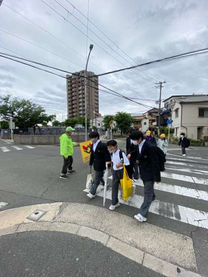 今日は毎月第二月曜日に行われる『東淀川区見まもるデー』の日、さらに奇数月は学校の先生も校区巡視を兼ねて、地域の方々と見まもり活動に参加します。