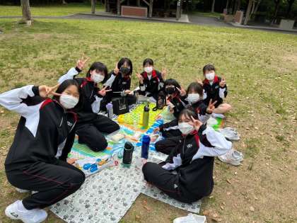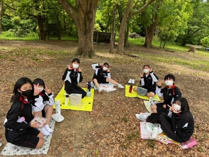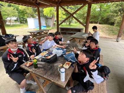 晴れたのでレジャーシートで外で食べる人、小屋の中の机で食べる人など様々です。