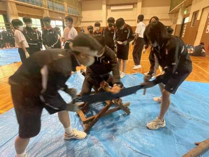 そんな中、2日目のプログラムは薪割り体験からのピザづくりです。