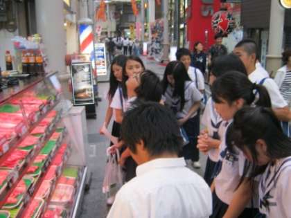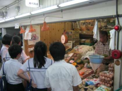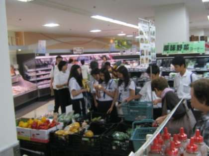 2年生では明日の校外学習(野外炊飯)で使う食材を購入するため、地元商店街・スーパーに出かけました。