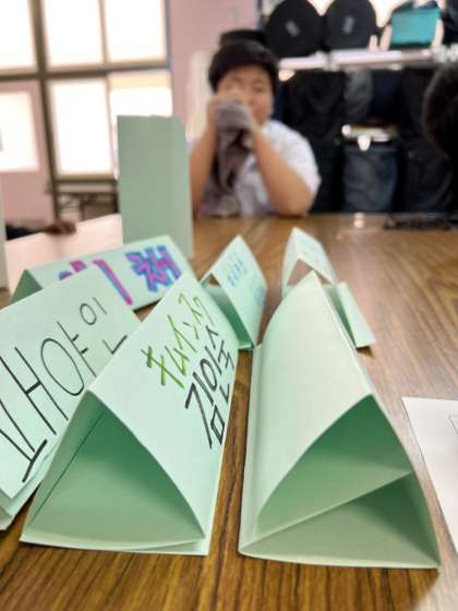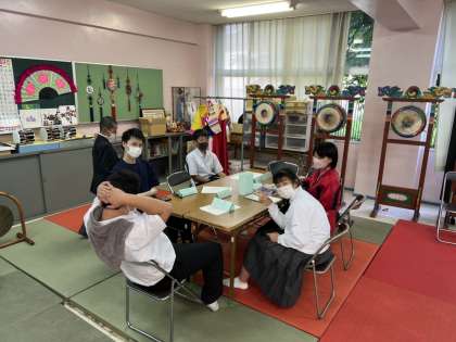 全学年が揃うのは今回が初!一人ひとりの名前をハングルで書いた名札を作り、残った時間で今度行う「国際交遊会」の内容の打ち合わせをしました。国際交遊会に向けて、来週は練習を行う予定です。