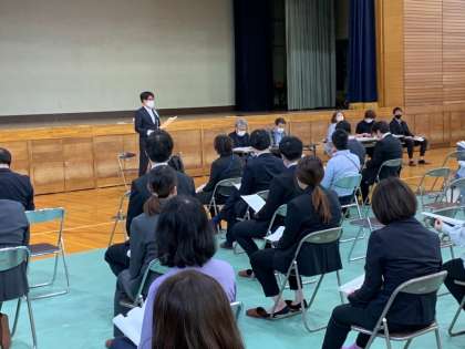 決算総会に引き続き、体育館に移動し小学校の教職員・保護者・PTAと合流。