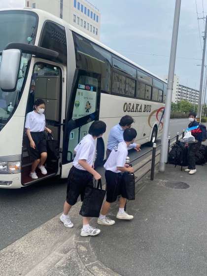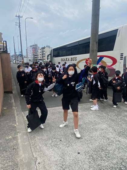 1年生が一泊移住から先程、帰校しました。交通事情も順調で予定時刻より、20分も早く到着です。