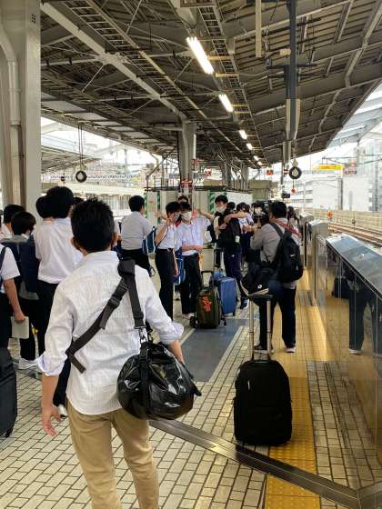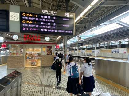 東口からホームへ、8時18分発新幹線のぞみ79号博多行に乗車です。