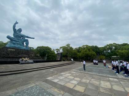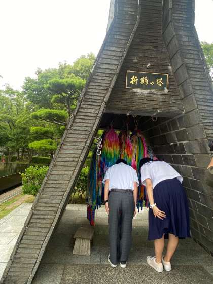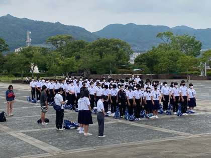 平和宣言の後、千羽鶴を奉納し、みんなで黙祷を行いました。