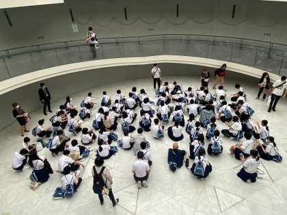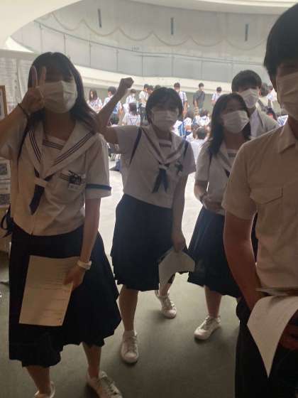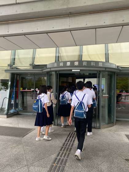 長崎原爆資料館での平和学習は、班ごとに調べ学習でワークシートを完成させていきます。