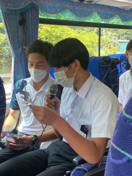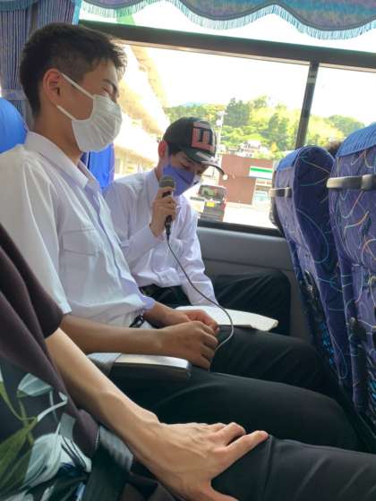 出発するな否やバスレクの始まりです。大ビンゴ大会で盛り上がりました。その後はカラオケ大会で盛り上がっています!