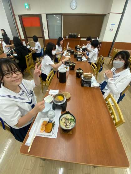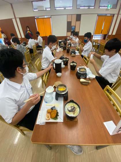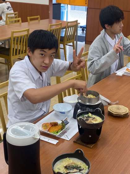 メインメニューは、博多ラーメンにそぼろごはん。お腹をいっぱいに、次は土産購買タイムです。
