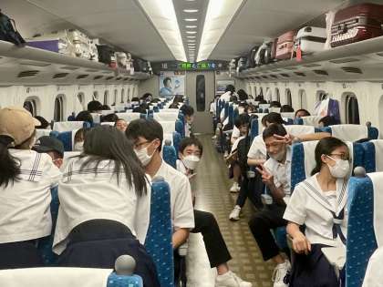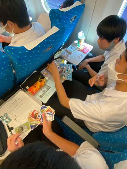 のぞみの車中では、生徒は残ったおやつの消費とカードゲームで盛り上がり、教師は後は時間が解決してくれる段となり、安息のひと時を満喫しています。