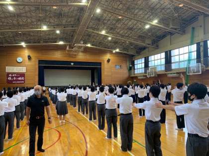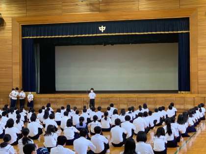本来であれば、月曜日定例の全校集会ですが、昨日は3年生の第1回実力テストの関係で、本日火曜日の開催となりました。