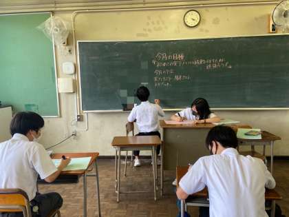 初回の実力テストが週明けに迫る中、「初めての実テ!いい結果を残すために頑張ろう!!」に決定し、卒業後の進路選択がある3年生として、勉強に取り組む姿勢についても話し合われていました。