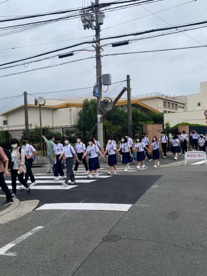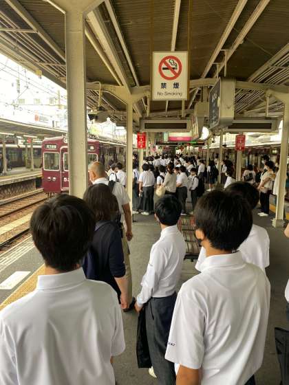 学校から電車に乗って、文楽劇場へ小1時間の行程です。