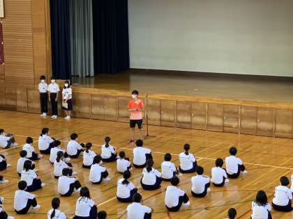 そして、先週の金曜日まで教育実習を本校で行なっていた実習生から、3週間のお礼と自分たちの目標に向かって努力をら続けてほしいとお話しがありました。