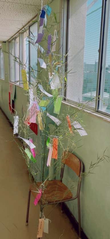 また、七夕の笹を学年の廊下に飾っています。みんなの願い事が叶いますように…。