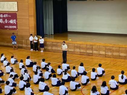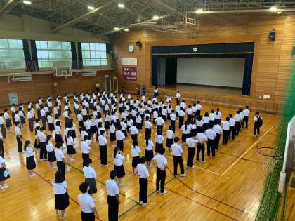 最後に、生徒指導部長の延廣先生より服装遅刻改善週間の意義をお話になられました。また、スムーズな二学期のスタートのためにも夏休みの課題の提出などにも気をつけようとお話になられました。