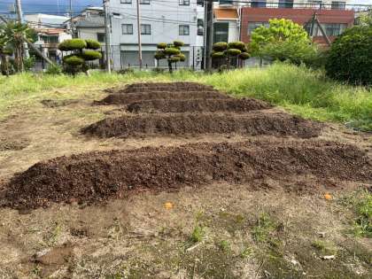 昨日の水曜日は五者活動の日、障問研の活動では夏野菜に代わってじゃがいもの種を植える作業をしました。